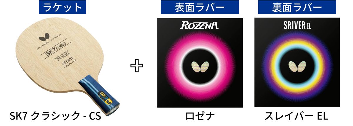 コントロールしやすく、正しいラケット角度を覚えるのに適した組み合わせです。前陣で(台から離れずに)速攻プレーをしたい方にお勧めです。