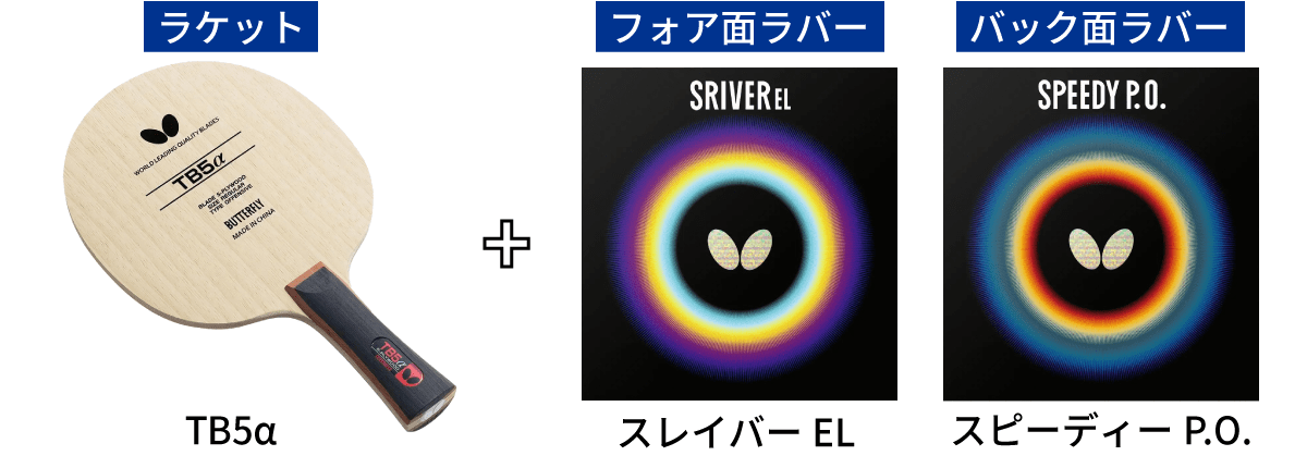 ボールにスピードを出しやすい組み合わせです。ドライブをかけたときの安定性にも優れています。