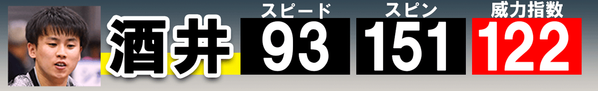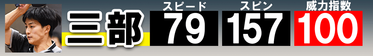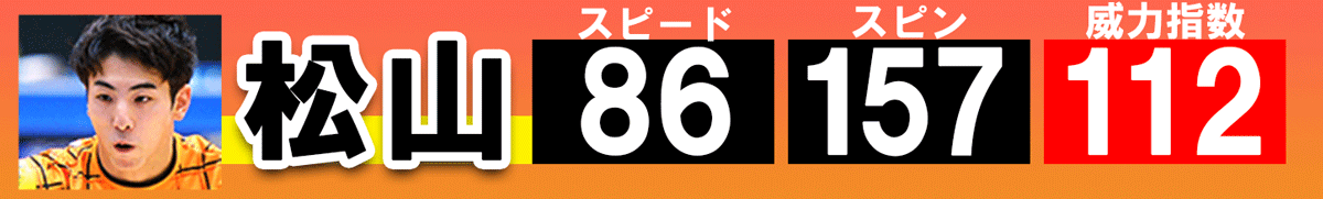 <参考:現在の威力王の計測結果>戸上隼輔 スピード85/スピン150/威力指数106