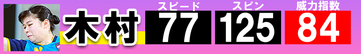 築地 はい、出ました。木村選手の記録、速度が77キロ、回転数125回転、威力指数84です。