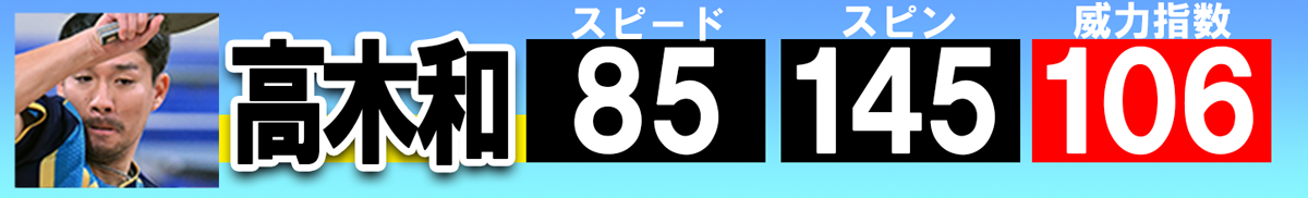 築地 高木和選手の記録が出ました。速度85キロ、回転数145回転、威力指数が106です。
