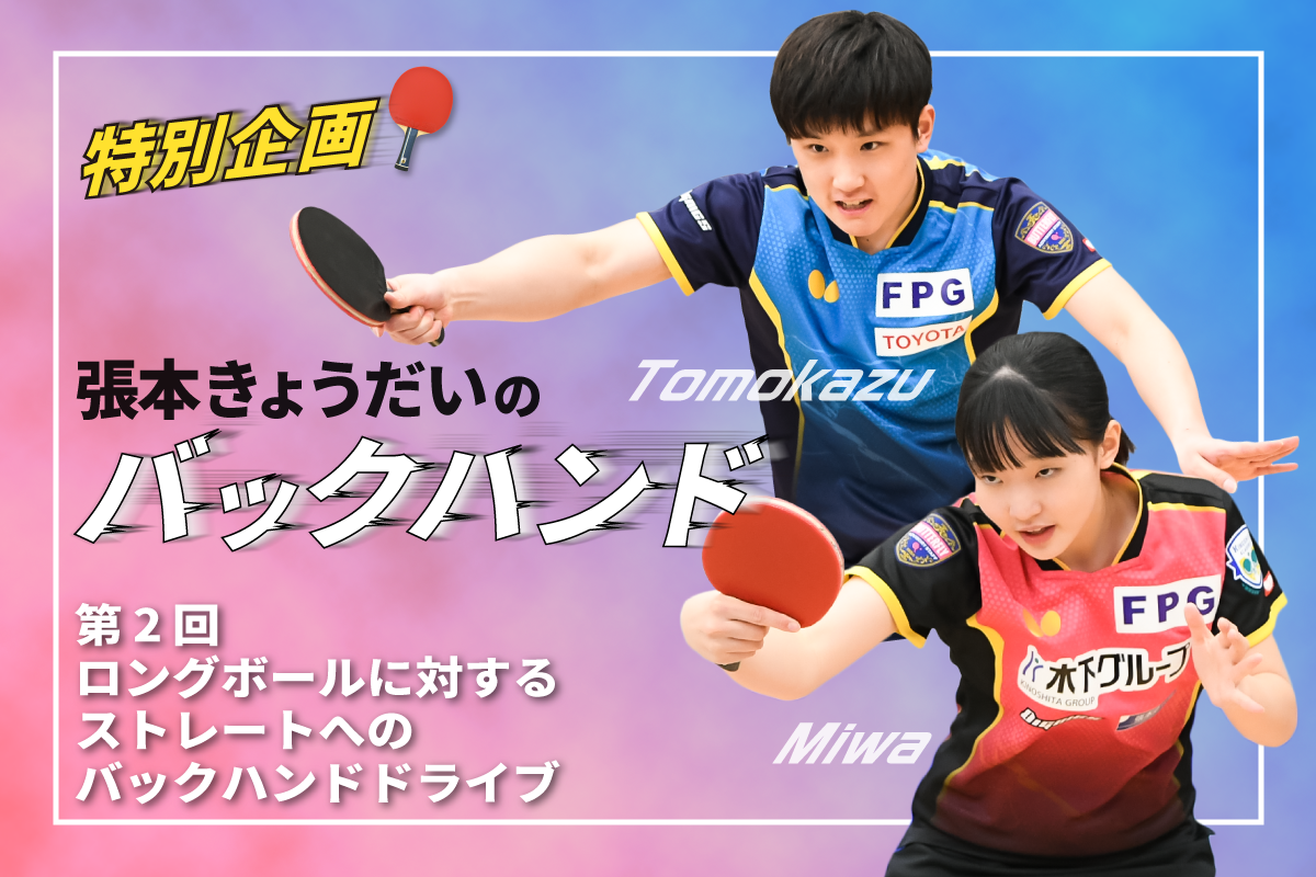 張本美和のロングボールに対するストレートへのバックハンドドライブ