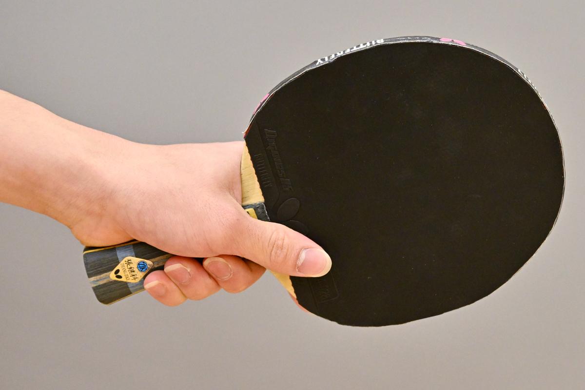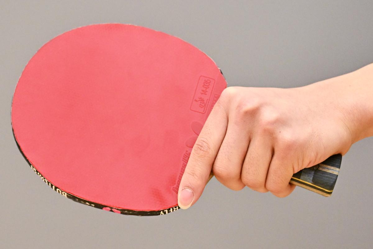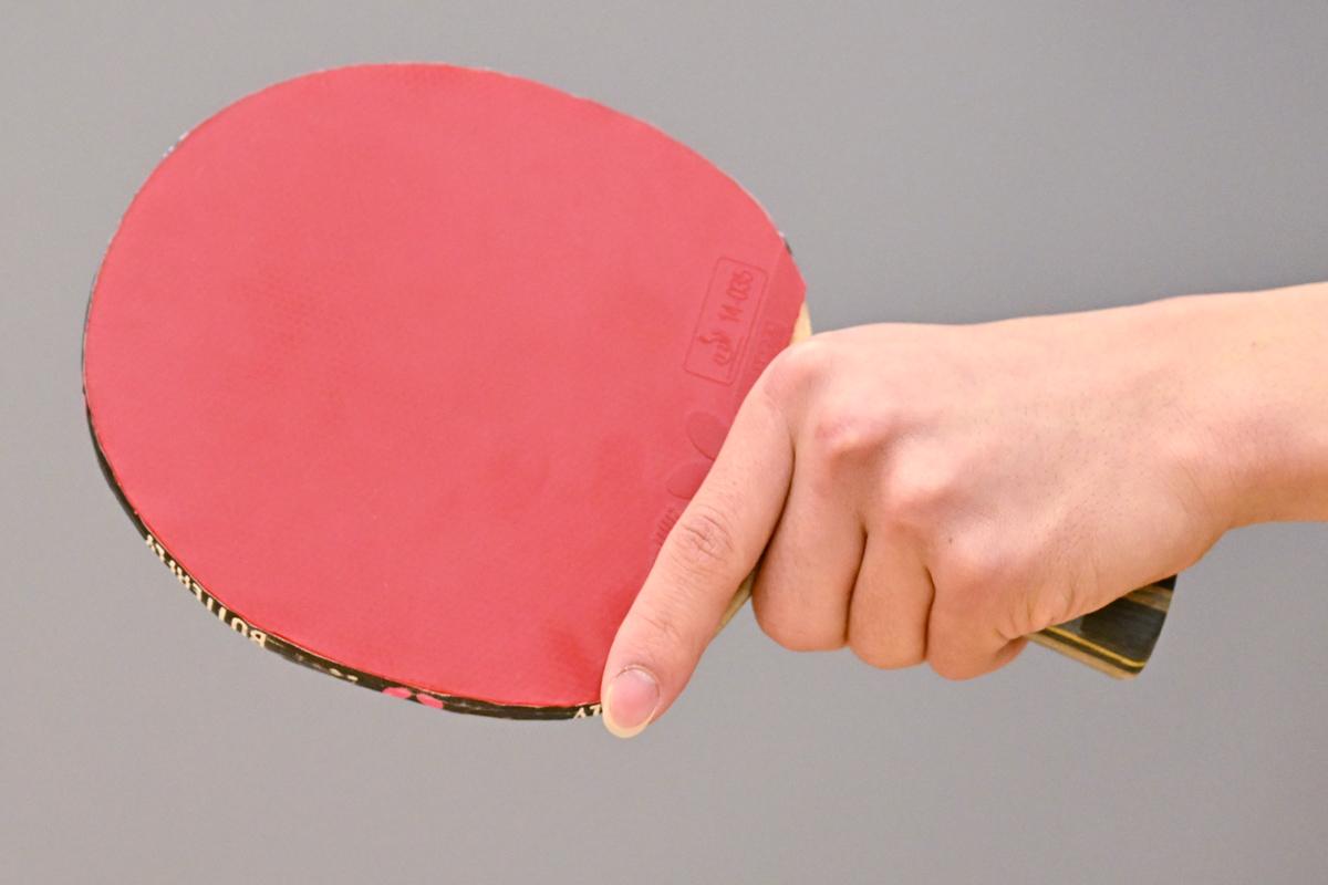 篠塚 フォアハンドを打つときは普通だと思いますが、バックハンドを打つときは(親指と人さし指で)つまむように握っています。ですから、フォアハンドからバックハンドに切り替えるときはグリップを変えますね。普段、グリップはあまり意識していませんが、あらためて意識してみると結構変わっていますね。