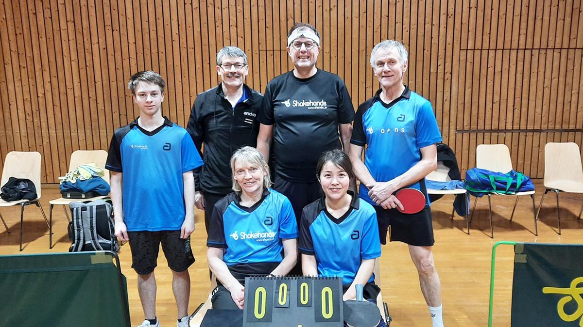 試合に向かうにあたっては、同じ第4チームで時々プレーをされている板垣さん(ケーニヒスホーフェン監督の板垣孝司氏)の奥様に「いろいろな人がいて楽しいよ。人生の経験として出てみて損はないと思う」と背中を押していただいたのですが、試合に出てみての感想はまさにその通り。対戦相手との試合前の乱打で1本目にスマッシュを打ち込まれたときは「そういうことか!」と思わず笑ってしまいました。