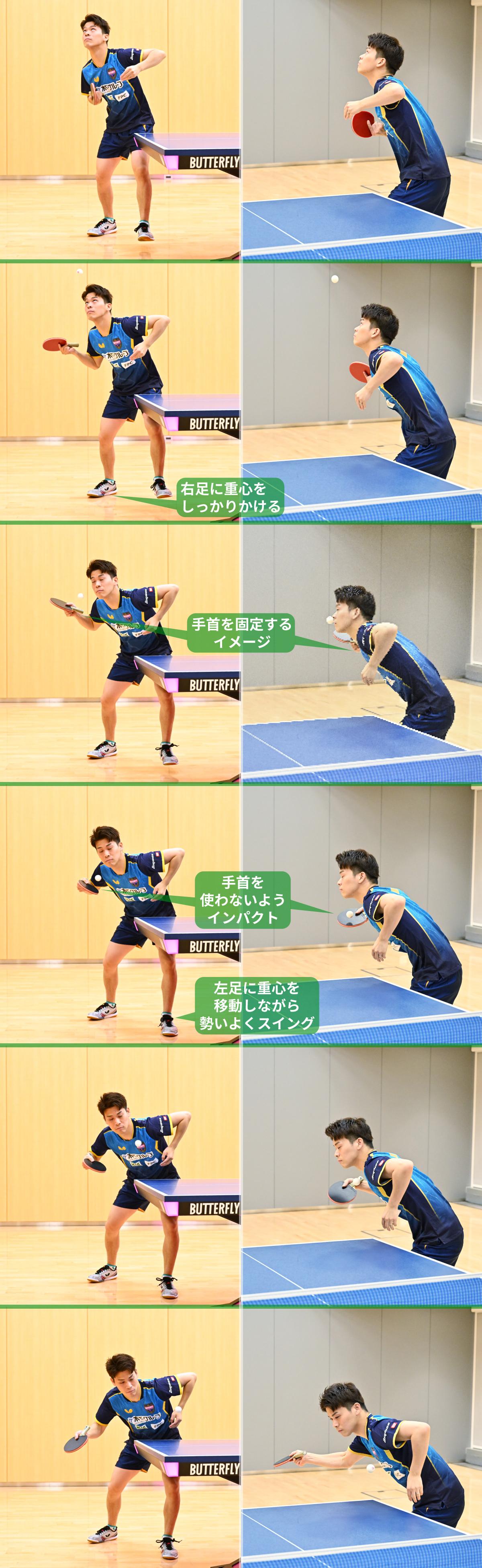 ナックル性サービスを出すときに、切れたサービスを出すときと明らかにフォームが違ってしまうと、相手に「ナックル性サービスだ」と簡単に見破られてしまいます。それでは相手に良いレシーブをされてしまい、チャンスが巡ってきません。