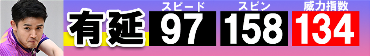 ※スピードの単位は時速、スピンの単位は回転毎秒