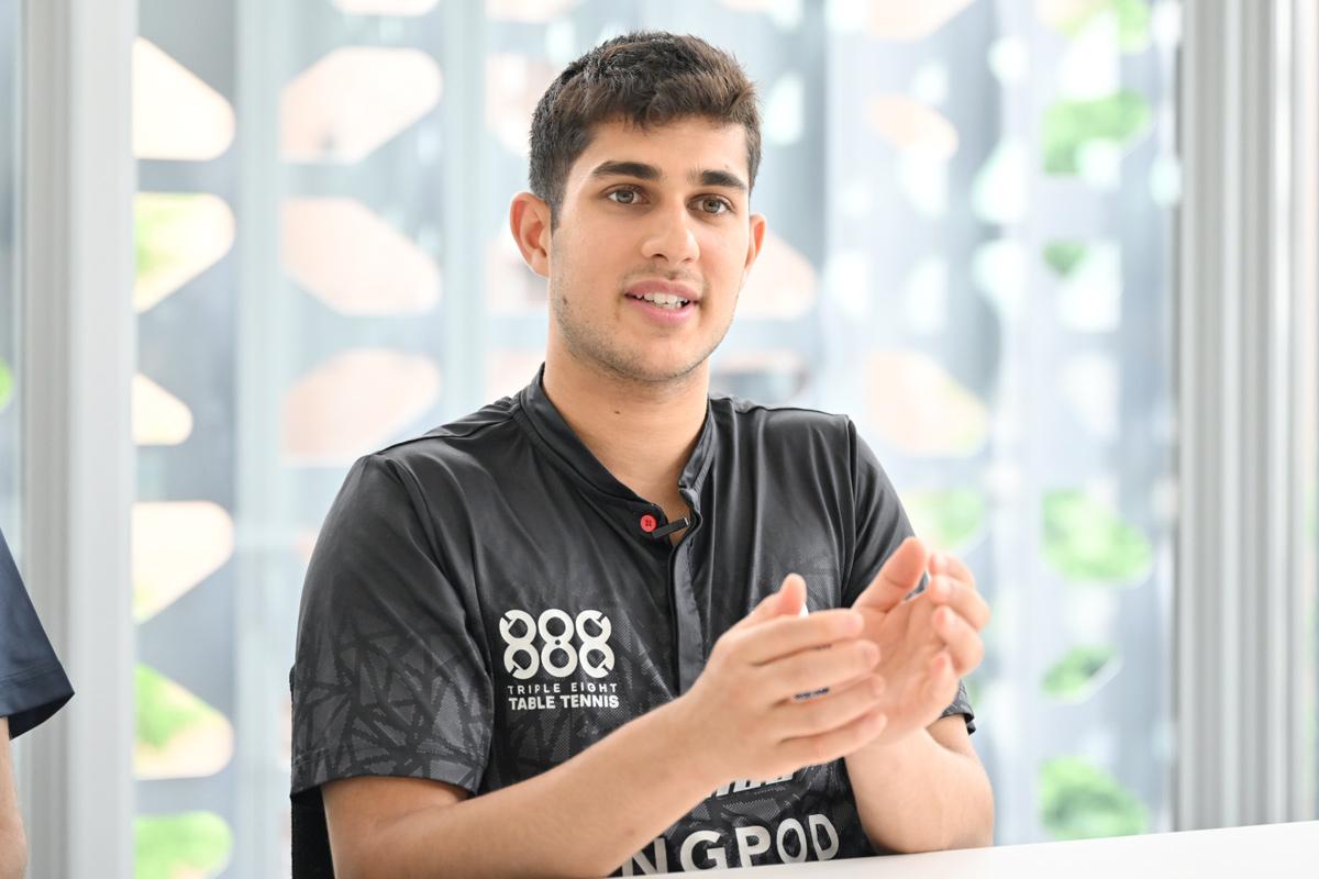 世界卓球2021ヒューストン男子シングルスでベスト8に入り、先に行われたパリオリンピック男子シングルスではベスト16に入ったカナック・ジャア(アメリカ)。一見すると、台からあまり下がらず前でプレーするオーソドックスなシェーク攻撃型だが、その内側には勝つためのさまざまなインテリジェンスが詰め込まれている。