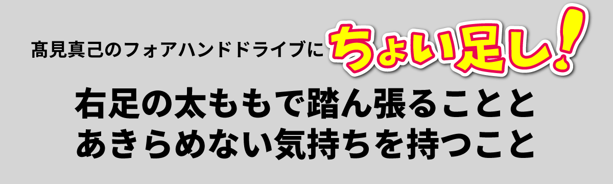 右足がしっかり固定されないと、良いフォアハンドドライブは打てません。髙見の試合を見ると、フォア側の遠いところに来たボールに対して足がぐらつくというか、踏ん張り切れていないことが多いように思います。