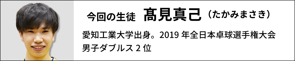 1回目は、チーム最年少でエースの髙見真己選手の「フォアハンドドライブをもっと良くしたい」というリクエストに対し、メンバーがそれぞれちょい足しポイントを紹介してくれました。