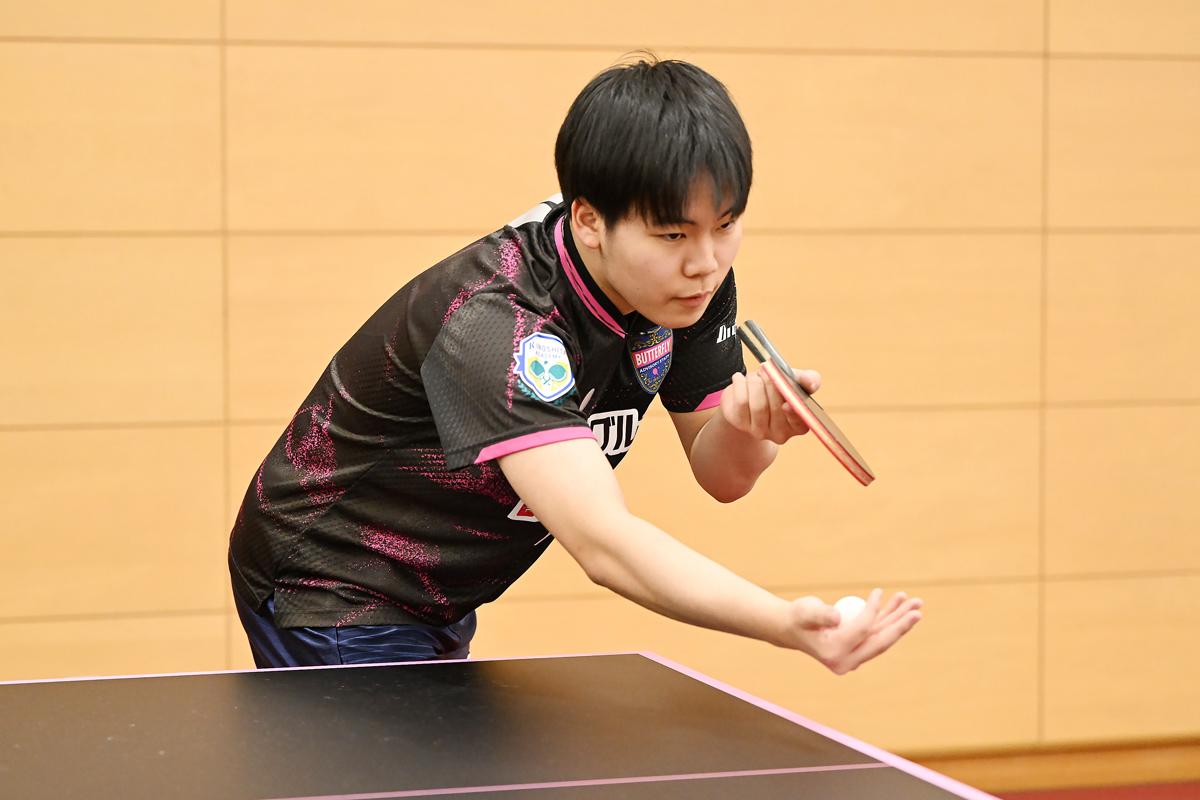 ストレートへロングサービスを出し、そこから両ハンドで畳み掛けるプレーは、松島の真骨頂だ。