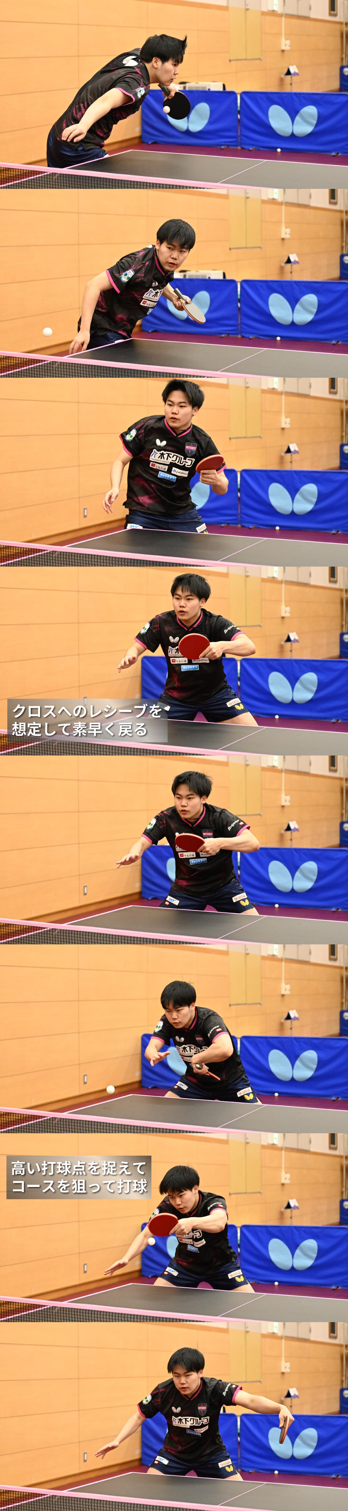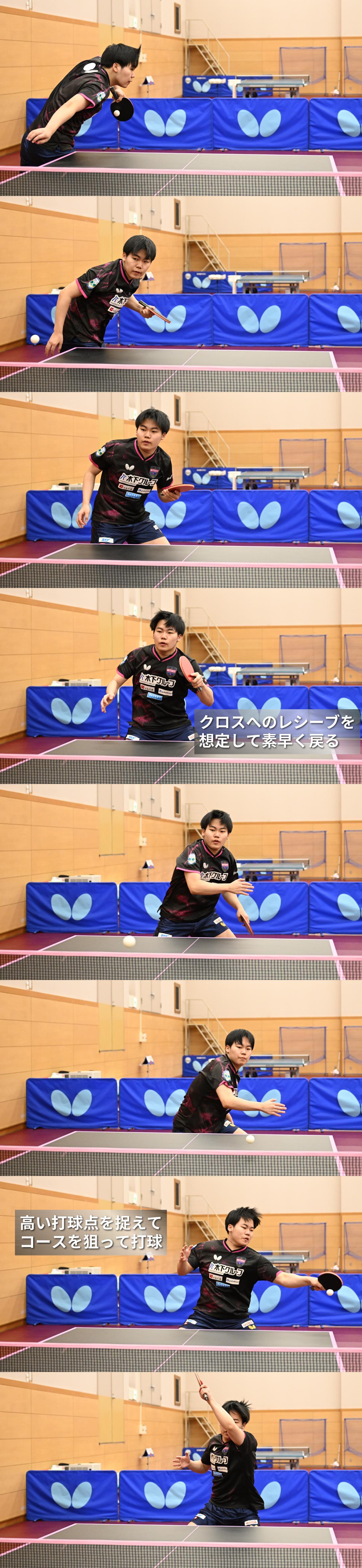 松島が教えてくれた3球目の待ち方や、連続写真の一連の動作を参考にして、ロングサービスからの3球目に磨きをかけてほしい。