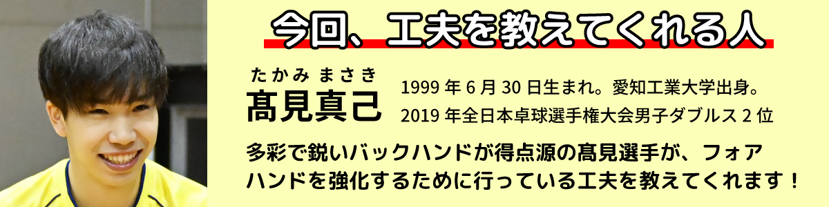 この練習に取り組む上で、僕が心掛けていることは、「強く打つ」ことです。試合では強く打たないと、なかなか得点につながりません。そのため、フォアハンドドライブを強く打つことを常に意識して練習しています。
