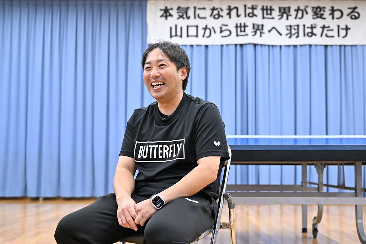 一方で、働き方改革で部活動が学校から離れて地域に移行していくのは変えられない流れです。例えば、サッカーなどはJリーグを中心にうまく循環していますが、卓球はTリーグと実業団がいまだに分かれており、なかなかサッカーのようには回っていません。中学校の部活動の移行に関しても、山口県内だけを見ても移行する市町村としない市町村とでまちまちです。今は、インターハイにしても全中にしても、既存のものをどう守っていくか、形を変えつつあるものに対して時間を稼いでいるだけのネガティブな考え方が多いように思います。僕は、それよりも、どういうふうにやれば、いろいろなものがうまく融合して発展していくのか、ポジティブなことを考えていかないといけない年齢だし、それが役割なのかなと感じ始めています。