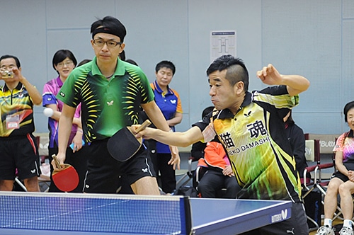 第1部ではチーム対抗によダブルス親善大会が行われた。各チームともに勝利を目指して熱戦を繰り広げる一方、好ラリーには歓声が送られ、熱気あふれる大会になった。