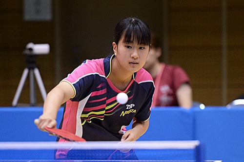 相馬がカデット女子シングルスで頂点に立った(写真は2016年の全中) カデット女子シングルスに出場した相馬は、準々決勝で柳漢娜(韓国)をゲームオールの末に破ると、準決勝では王添藝、決勝では黄穎琦と中国勢をいずれもストレートで破り、頂点に立った。