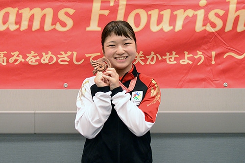 ダブルスは、亀澤さんとペアを組んでまだ1年くらいで練習時間もあまり取れなかったですが、その分コミュニケーションをしっかり取って試合に臨みました。自分たちの力を発揮して銅メダルを取ることができたので良い経験になりました。来年から社会人になりますが2年後のアジア大会、4年後のデフリンピックに出場して今回以上の成績を収めてデフリンピックの知名度も上げていきたいと思います」