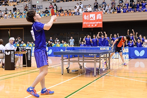 また、今大会は3年生の渡辺の活躍が印象に残っています。僕自身がここ最近不調で悩んでいましたが、用具を変えたり、練習内容を変えたりしてそれが良い方向に行ってユニバーシアードで優勝することができました。その経験があったので、ここ最近苦しんでいる(渡辺)裕介にもリーグ戦前の練習で、練習メニューを決めてあげたり、変化をもたらしたりするようにしました。