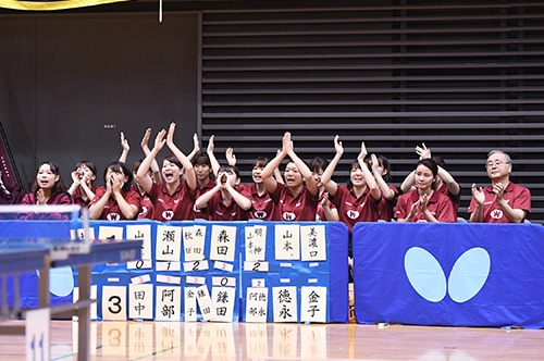 私は団体戦で勝つことをチームの方針にしています。1~4年生まで試合に出場する選手、出場しない選手関わらず、「団体戦優勝」というところにベクトルが向いています。そうした一体感がベンチでの雰囲気の良さにもつながっていて、非常に良いチームになってきていると感じています。」