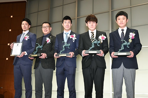 2017毎日スポーツ人賞表彰式。右端が張本(写真提供=毎日新聞社)