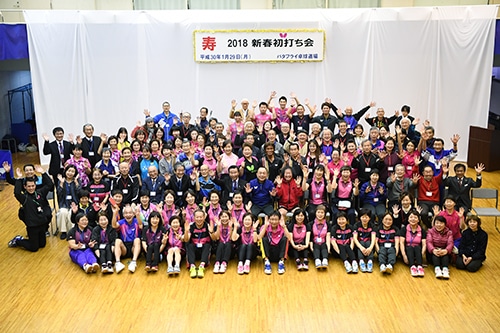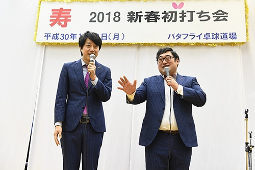 1月29日、バタフライ卓球道場(東京都杉並区)で「2018新春初打ち会」が開催された。らくご卓球クラブのメンバーや歌手、各地のレディースが参加し、ダブルス親善試合やアトラクションを楽しんだ。