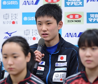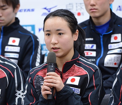 2月16日、味の素ナショナルトレーニングセンターで2018ITTFチームワールドカップの日本代表選手による記者会見が行われた。