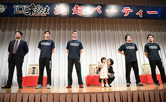 パーティーには700名を超える関係者、招待客らが集い、Tリーグの初代王者という目標を掲げるT.T彩たまの前途を祝した。また、先日発表されたの春日部市とのスポーツ推進に向けた連携協定締結に続き、さいたま市、越谷市とも連携協定を結んだことを発表。Tリーグの試合会場を擁する3市の市長が登壇し、スポーツを通じた地域振興に向けての意気込みを語った。