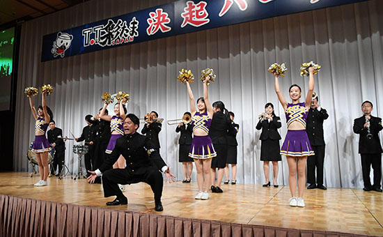 柏原社長の母校、明治大学の応援団が締めのパフォーマンス