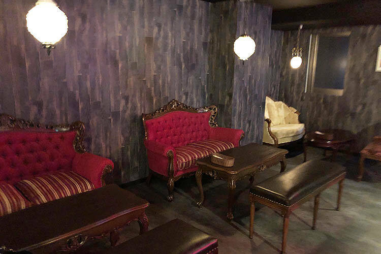 店名の由来でもある赤い卓球台が強烈な存在感を放つ店内は、卓球のほか、ダーツやVIPループではカラオケも楽しむことができる。アンティーク調のソファやきらびやかなシャンデリアなど内装もこだわっており、まさに大人が楽しみ、くつろぐための「社交場」だ。