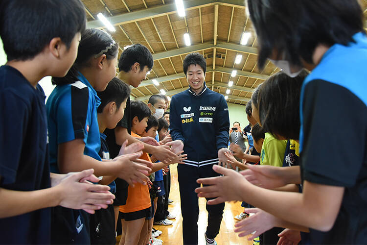 水谷選手は子どもたちに練習の重要性を説くと同時に、「卓球を楽しむ気持ちも忘れないように」という温かい言葉を残して、次の訪問先へと向かった。