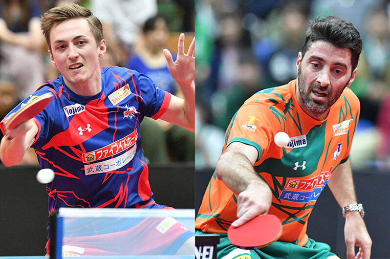 ジオニス(写真右)は2019-2020シーズン途中よりT.T彩たまに加入。2019-2020シーズンはシングルス3戦全勝という成績を収めた。丹羽孝希(木下マイスター東京)に3-0で勝利、張本智和(木下マイスター東京)とのビクトリーマッチで勝利、荘智淵(琉球アスティーダ)に3-1で勝利と、チームの勝利に大きく関わる活躍だった。