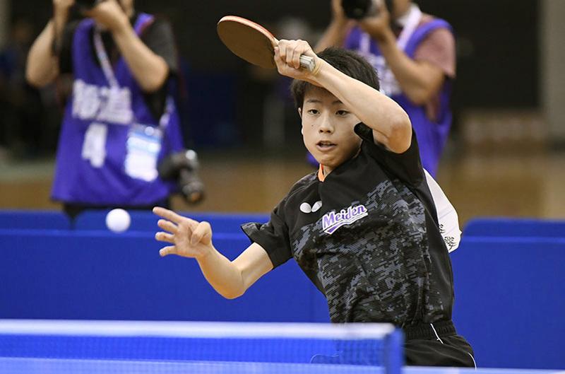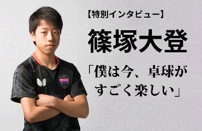 篠塚大登は左シェーク攻撃型。現在16歳。昨年のインターハイでは男子シングルスで準優勝の成績を収め、2019年世界ジュニア卓球選手権大会にも出場した。