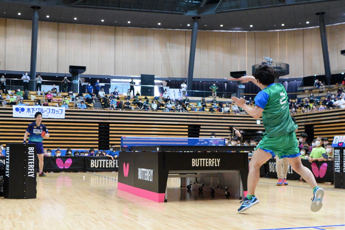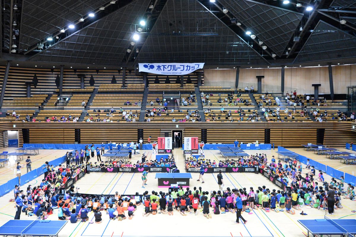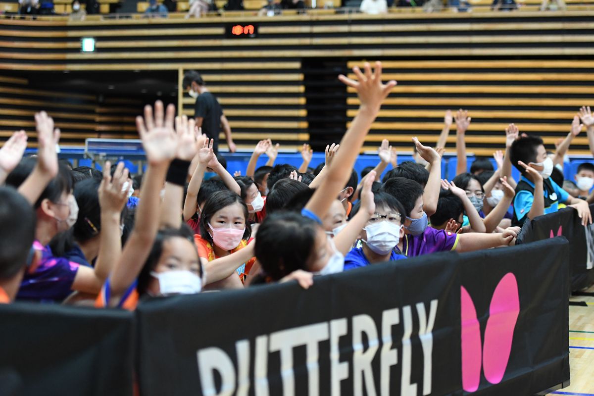 7月17日(日)、東京都大田区で「木下グループカップ2022 小学生大会」が大田区立総合体育館で開催され、大会前のイベントに水谷隼、及川瑞基(ともに木下グループ)が登場。東京近郊の小学生を中心に全国の小学生およそ400名が来場し、大会に先立ってトップ選手2人の技を堪能した。