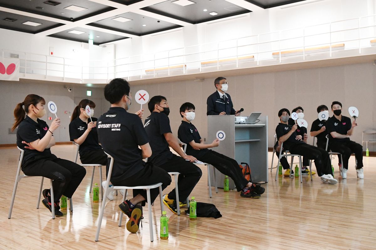 イベントの前半は、株式会社タマス代表取締役社長の大澤卓子による開会のあいさつ、株式会社タマス研究開発部による用具の製造工程などに関する詳しい説明や、用具に関する○Xクイズ、また、質疑応答が行われた。普段慣れ親しんでいる用具について、選手たちからは多くの質問が寄せられた。