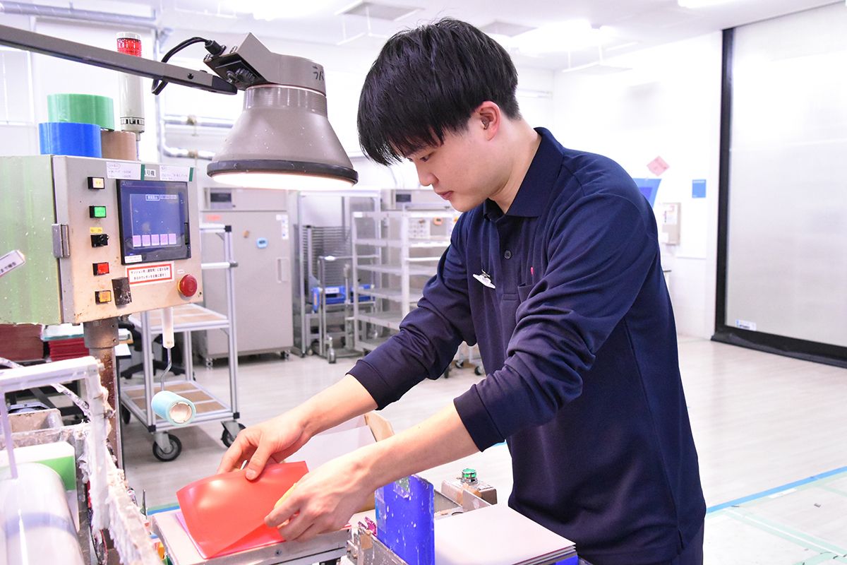 灘光が入社した時の直属の上司で、現在はラバー生産の責任者として現場を預かる佐藤は「灘光さんはラバー加工課のラバー仕上係で、主に後半工程のラバーが出来上がるところを中心に担当しています。接着など5つほどの工程をマスターしていて、幅広く安定して作業を務めることができます。灘光さんは部署では若手の方で、明るく陽気なキャラクターなので、先輩社員に褒められたり、時には叱られたりしています」と職場でのエピソードを紹介した。