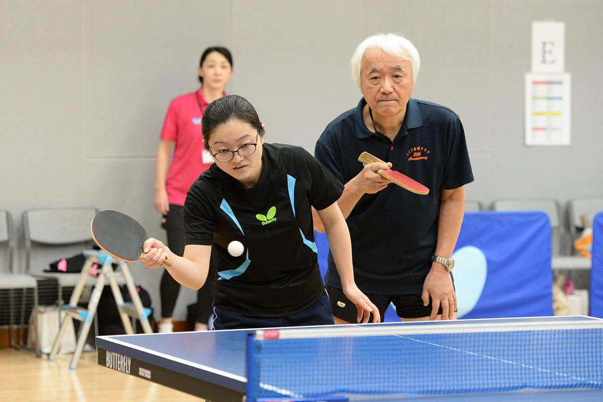エキシビションマッチに続いて、団体戦(3ダブルス)を実施。8チーム(1チーム6人)による総当たり戦が行われた。