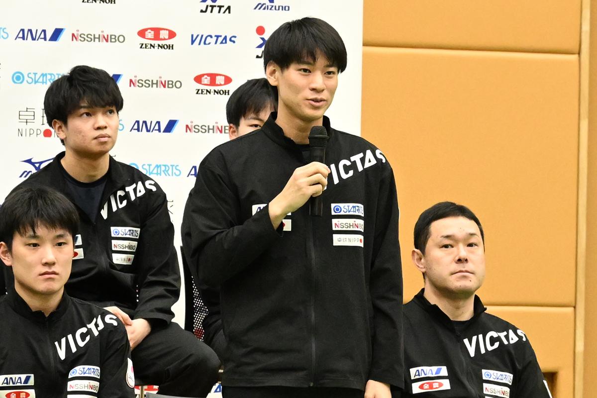2024年2月8日、東京・味の素ナショナルトレーニングセンターで『2024年世界卓球選手権釜山大会(団体戦)』(2024年2月16〜25日・韓国)の日本代表団 公開練習・記者会見・壮行会が行われ、多くの報道陣が詰めかけた。