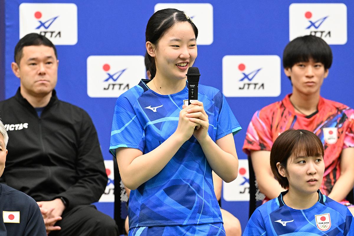 公益財団法人日本卓球協会は7月12日、味の素ナショナルトレーニングセンターで、パリオリンピック卓球競技の日本代表選手の記者会見を行った。