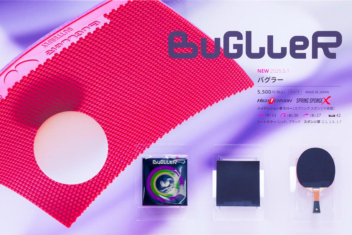 用具で注目を集めたのは『バグラー』だ。「ナックルで相手の感覚をバグらせろ!」というキャッチフレーズの表ラバーの性能を、卓球の腕利きバイヤーたちが熱心に確かめた。