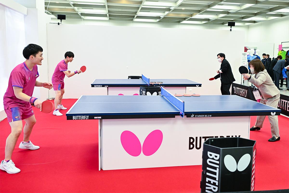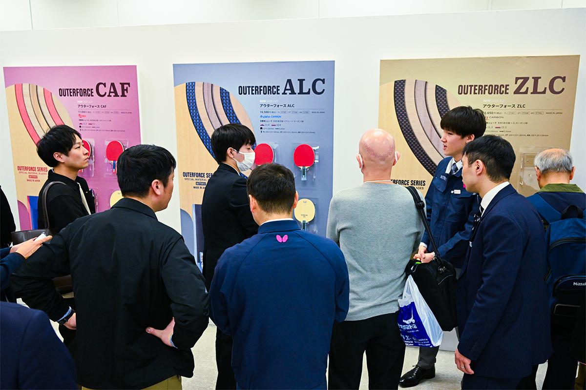 会場は東京都庁の真横というアクセスの良さもあり、全国から大勢のスポーツショップや卓球専門店などが来場し、2025年春に発売されるラケット、ラバー、ウエア、シューズなどの新製品がお披露目された。