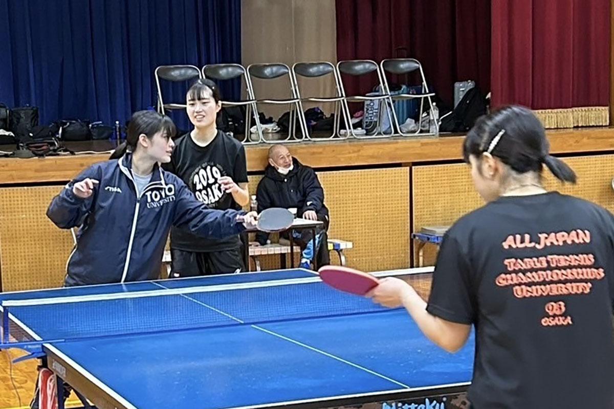 コーチを務めたのは手塚崚馬(明治大学4年)と岡村香苗(東洋大学3年)。加えて、新潟産業大学、金城大学の卓球部がサポートした。