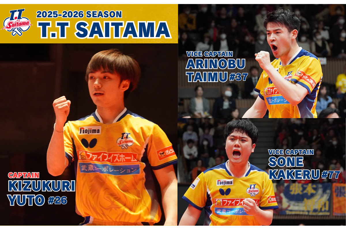 T.T彩たまはTリーグ2025-2026シーズンのキャプテンおよび副キャプテンについて、キャプテンは木造勇人選手、副キャプテンは有延大夢選手と曽根翔選手に決定したと発表した。