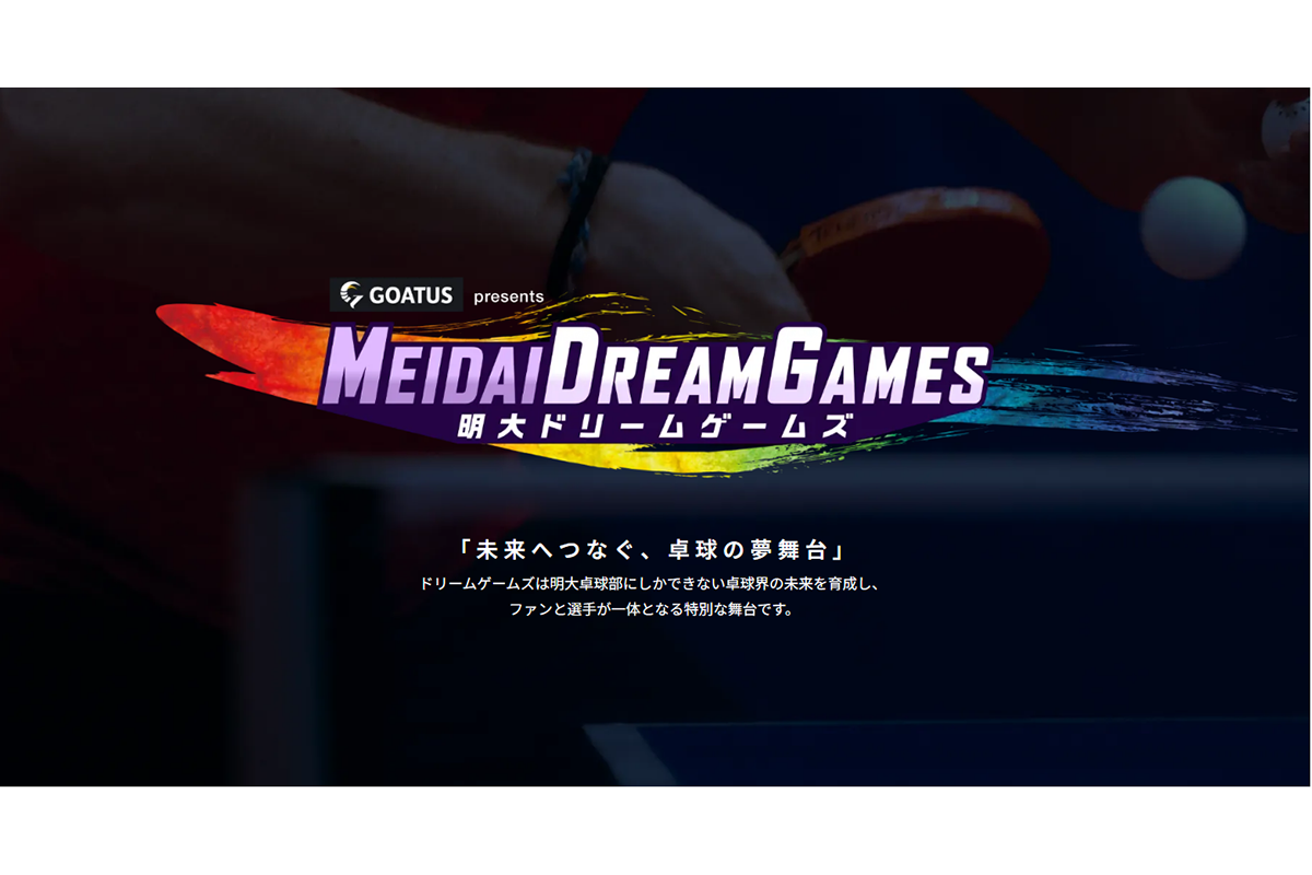 明治大学卓球部OBが中心となって発足した一般社団法人「明大卓球マネジメント」は、明治大学体育会卓球部のOBと現役選手による特別エキシビションマッチ「GOATUS presents 明大ドリームゲームズ ~調布市制施工70周年記念事業~」を2025年8月12日に開催すると発表した。