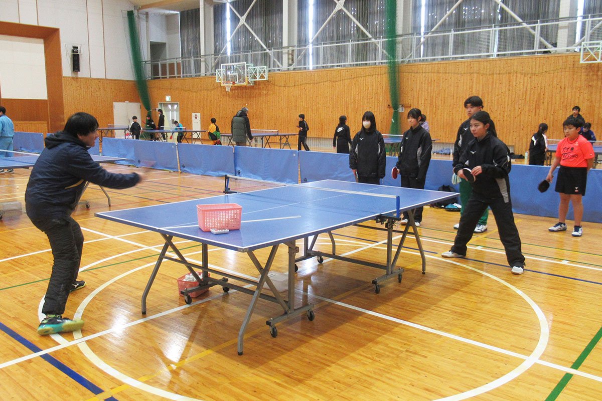 この練習会は上伊那卓球連盟が主催するもので、上伊那地区の状況を熟知した強化普及部員のもと、参加者それぞれのレベルに即した練習が行われた。雪の降る寒い日だったが、47名の小・中学生が参加し、普段とは異なる指導者からの指導に刺激を受け、熱心に練習に取り組んだ。