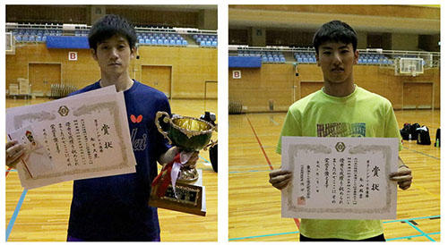 男子シングルス優勝の松下大星(愛知工業大・左)、準優勝の松山祐季(愛知工業大・右)
