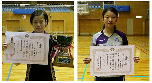 女子シングルス優勝の中畑夏海(愛知工業大・左)、準優勝の朝田茉依(同志社大・右)第31回加盟団体オープン卓球大会 兼 第31回バタフライ争奪卓球大会(中学の部)