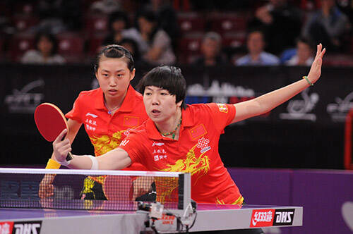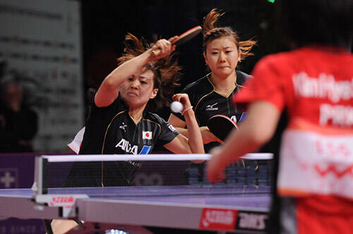 大会5日目、昨日まで8コートあった卓球台が今日から4コートに絞られ、会場の雰囲気はぐっと世界卓球らしさを増してきた。最初の種目は女子ダブルス3回戦、日本のトップバッターは福原・平野、2ラウンド目で藤井・若宮、石川・森薗が登場する。