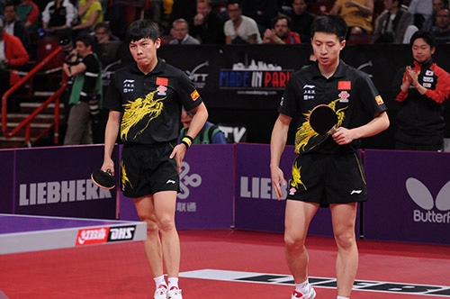 ロッテルダム大会ベスト8の実力者ペアが再びベスト8入りをかけて中国ペアと対戦した。高い打球点で先に攻めた日本ペアが第1ゲームを先行。しかし、十分な体勢で打たれると1発の威力では中国ペアに軍配が挙がる。得意のラリー戦で思うように点が取れない日本は1-3と窮地に立たされる。第5ゲームも3-9と離され絶対絶命かと思われたが、ここから気が緩んだか中国がミスを連発し、日本ペアはこのゲームを逆転。第6ゲームも2-6から日本ペアが挽回すると、陳杞が後輩の方博に強く当たるなど中国ペアに不協和音が。最終ゲームは張、松平がスーパープレーを見せる一方で、中国は凡ミスを繰り返す。会場のムードも日本のホームのように盛り上がり、日本ペアは岸川・水谷に続きメダルへの挑戦権を獲得した。