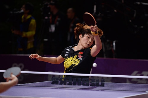 女子シングルス4回戦が行われた。残念ながら日本勢は姿を消したこの種目、中国勢が順当に勝ち上がっている。