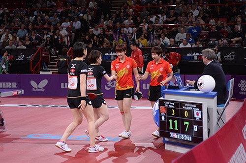 「自分たちのプレーをまったく出させてもらえませんでした。実力のある選手ですし、今日は完敗だと思います。1ゲーム目にユ・メンユ選手が緊張しているのがこちらにまで伝わってきましたが、そういうふうに相手が緊張しているゲームを取ることができなかったのが大きかったです。相手は1ゲーム目を取って伸び伸び思い切ってプレーしてきました。