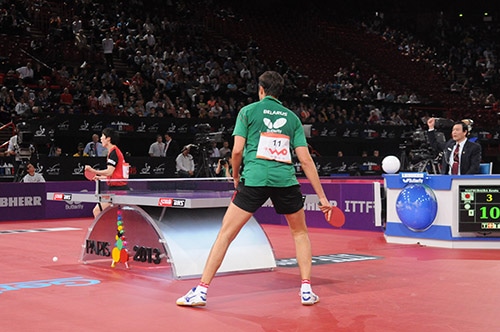 丹羽はロンドンオリンピックのアジア大陸予選会で勝っている馬龍と勝負。序盤から馬龍の豪快なフォアハンドが丹羽に襲いかかる。ボールの速い選手はほかにもたくさんいるが、馬龍のフォアハンドの威力は桁違いのものを感じる。そのボールをカウンターする丹羽の技術は間違いなく世界トップクラスのものだ。中盤までは互角の勝負を見せたが、第5ゲームで丹羽がリードを許すと、馬龍のフォアハンドドライブは勢いを増して、丹羽は攻め返すことができない。メンタルの弱さが指摘されることの多い馬龍だが、この試合では最後まで強気のプレーを見せて丹羽を退けた。
